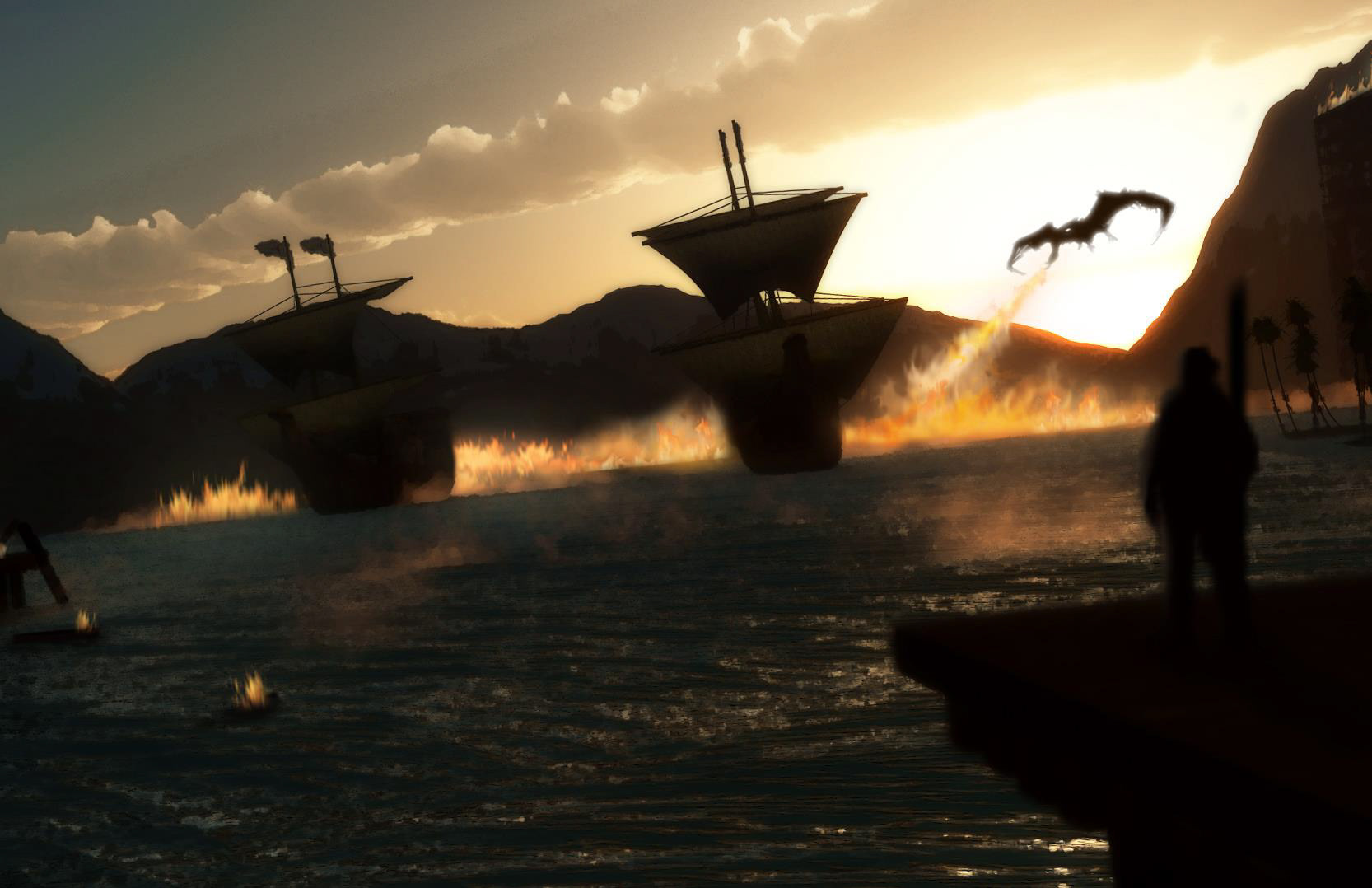 Smaug from The Hobbit digital painting. Created in Vue and Photoshop