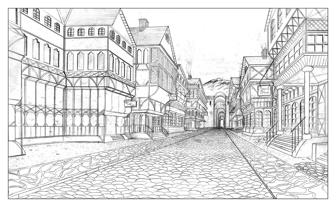 Wizard street drawing in pencil